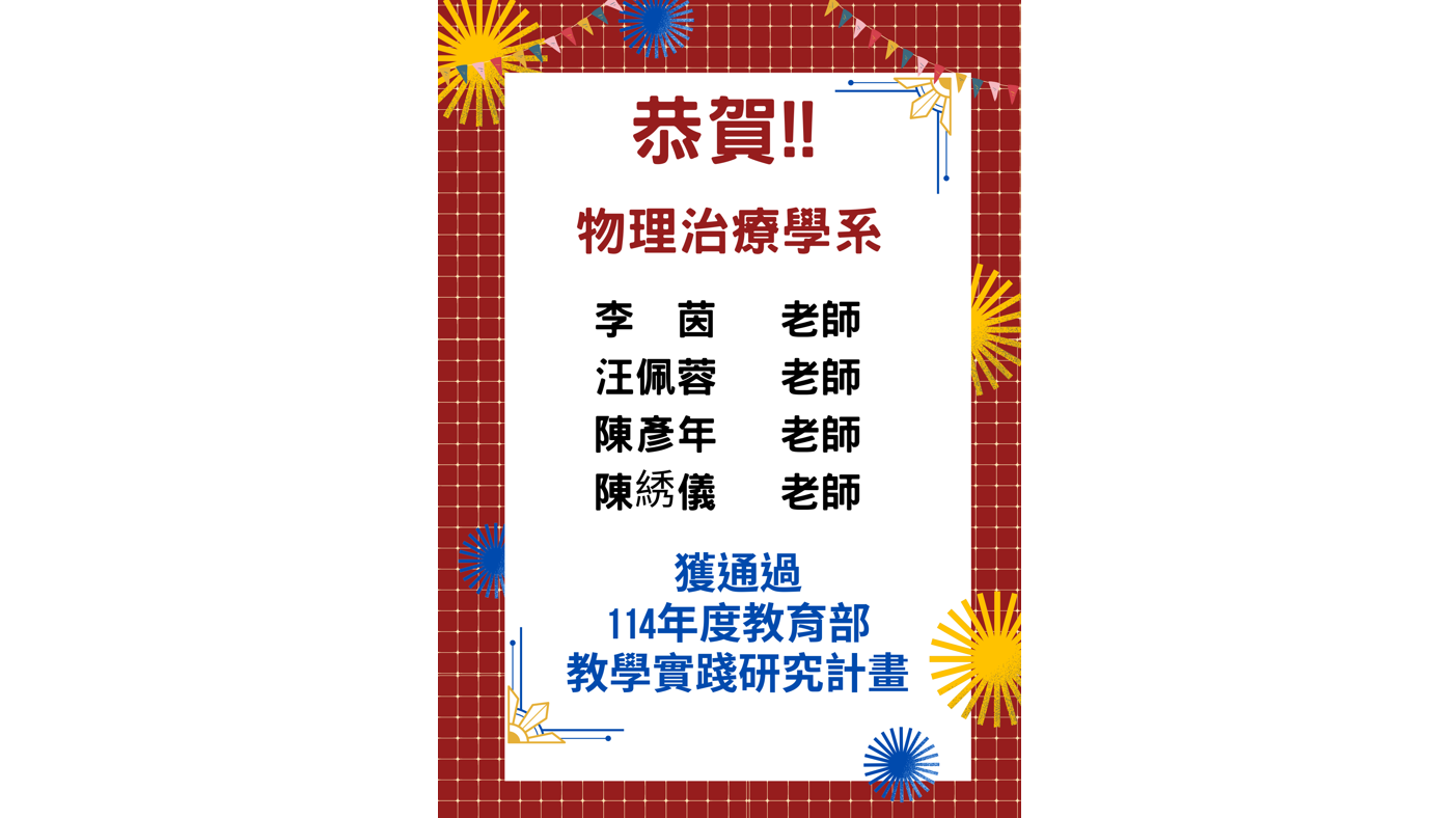 教育部「學海系列」補助,亞大全國第一,物理治療系提出四項申請案,獲得通過。